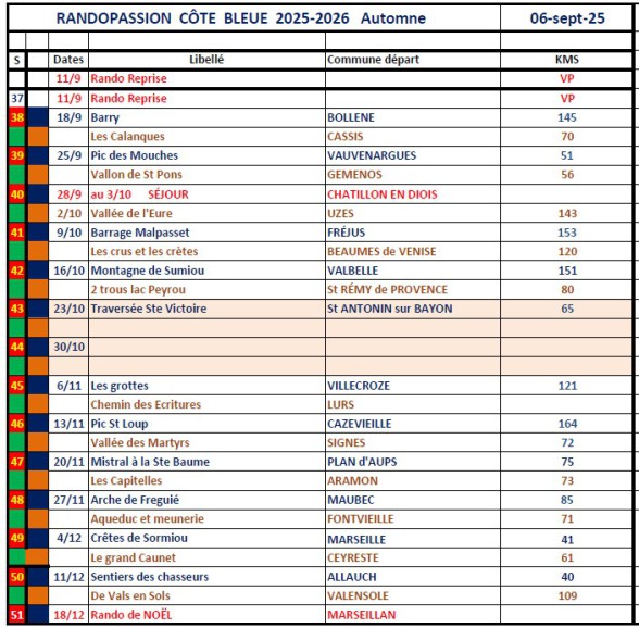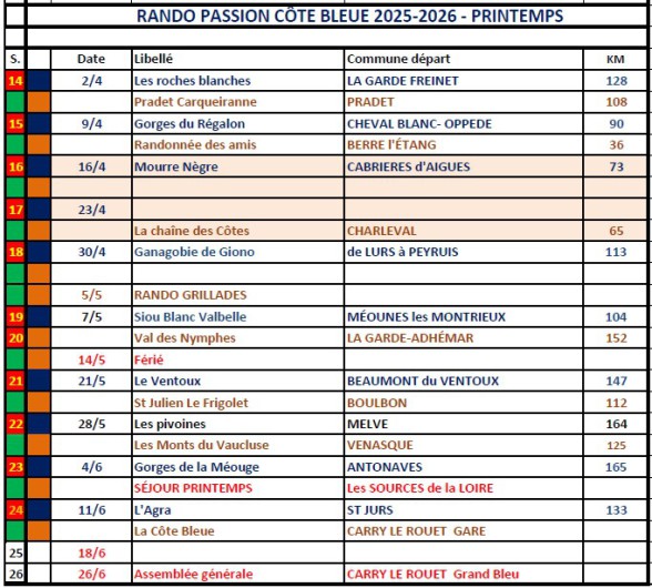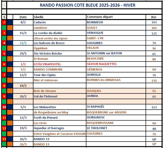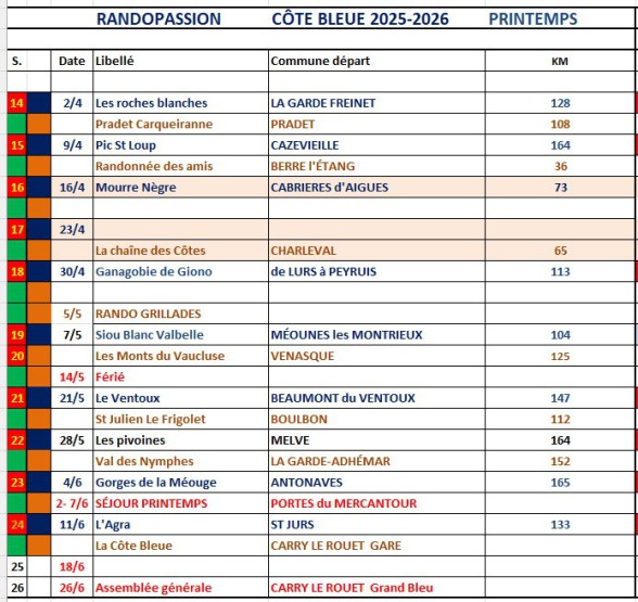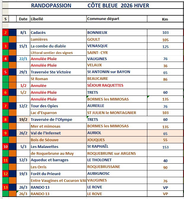 Programme de nos randonnées